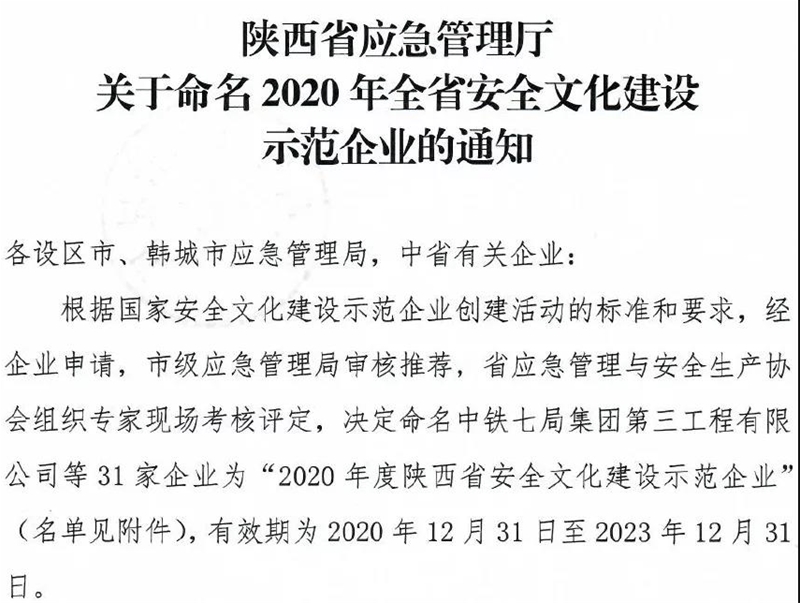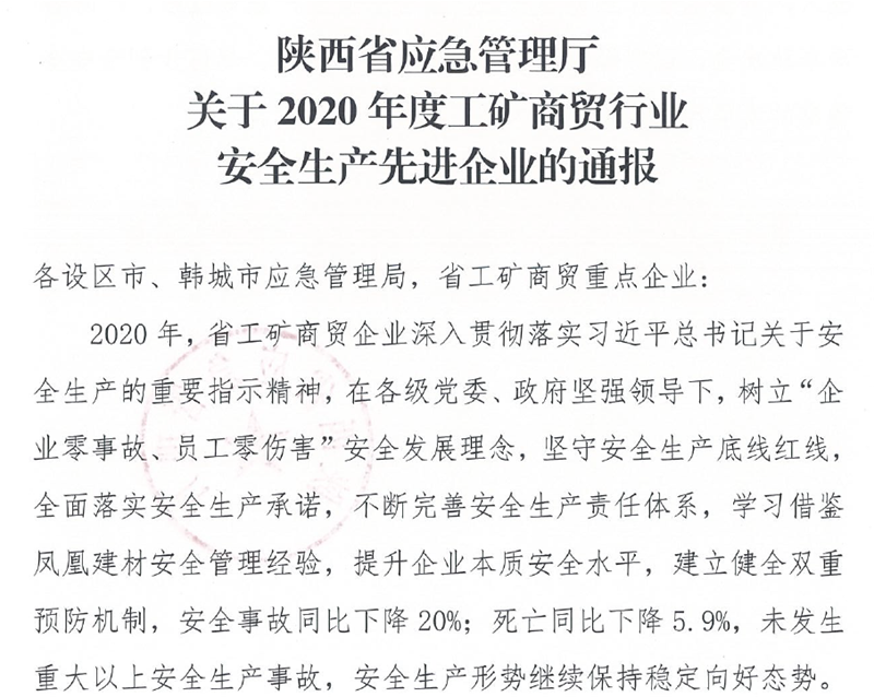 龍鋼公司榮獲“2020年度陜西省安全文化建設(shè)示范企業(yè)”及“2020年度工礦商貿(mào)行業(yè)安全生產(chǎn)先進(jìn)企業(yè)”榮譽(yù)稱號(hào)