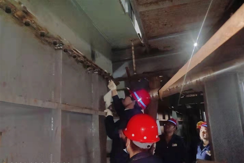 在檢修現(xiàn)場,劉安民了解了檢修計劃、工程進度等情況,詢問了檢修進展、存在困難及重點環(huán)節(jié)等,并詳細(xì)了解了450平方米燒結(jié)機成品區(qū)域環(huán)冷機檢修質(zhì)量和進度,詢問了外協(xié)單位資質(zhì)、施工工藝和工期情況,重點了解了450平方米燒結(jié)機混料區(qū)域鋼托輥和鋼絲繩更換項目、臺車區(qū)域陶瓷襯板和風(fēng)箱消缺項目、送料器安裝項目、點火機試機校正項目、布料帶軌道安裝項目等。同時叮囑現(xiàn)場職工及外協(xié)人員要穿戴好勞護用品,在確保安全的前提下,保證施工進度和質(zhì)量。