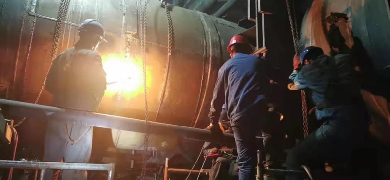 在4#高爐搶修現(xiàn)場,機械運轉(zhuǎn)的聲音此起彼伏,電火花閃爍不斷,大家正一刻不停奮戰(zhàn)在高爐搶修現(xiàn)場……