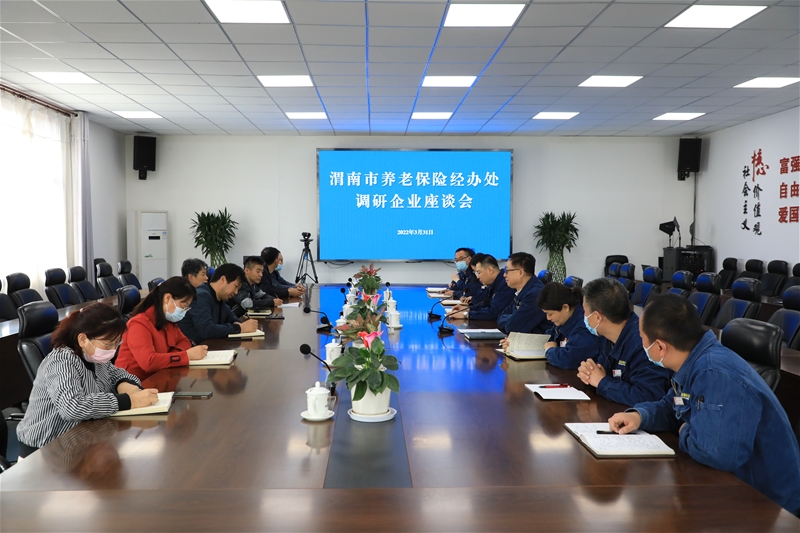 3月31日,渭南市養(yǎng)老保險經(jīng)辦處副處長劉忠讓、韓城市養(yǎng)老經(jīng)辦中心主任成軍奇一行來公司走訪調(diào)研,并召開座談會。公司副總經(jīng)理朱元洲、行政管理部相關(guān)負(fù)責(zé)人參加。