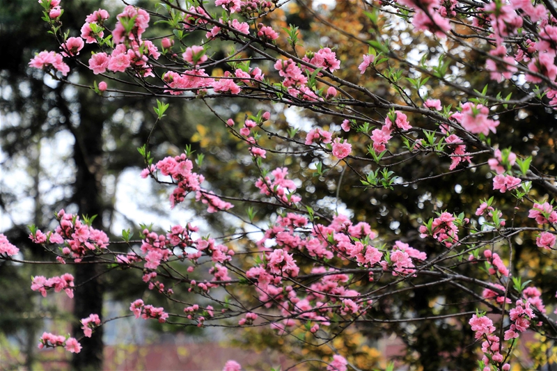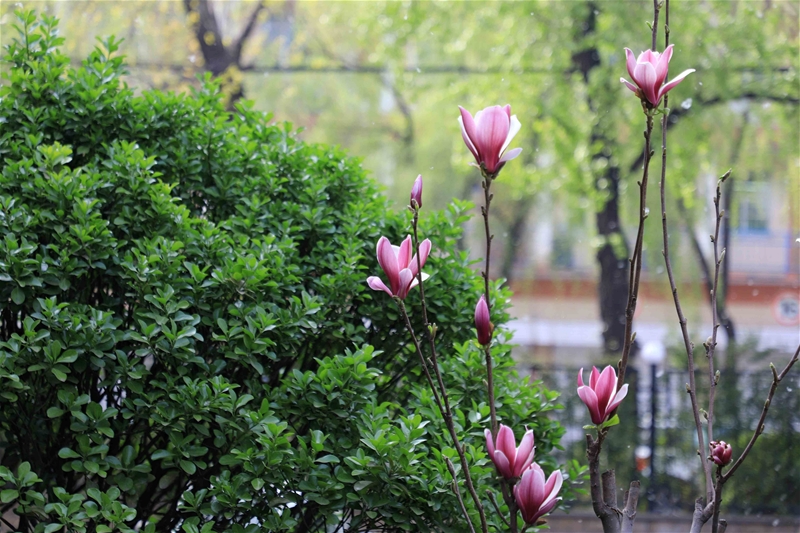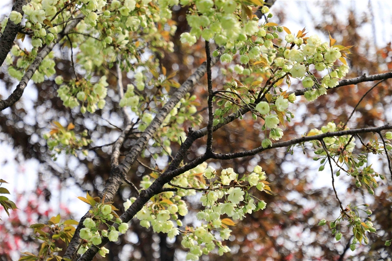 圖一:紅的似火,粉的似霞,白的如雪,綠的如油,春日鋼城宛如童話般世界。