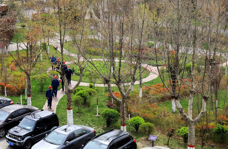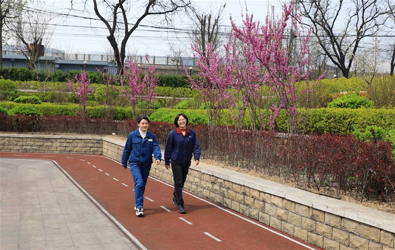 圖四:午后,職工們紛紛走出辦公室,活動活動筋骨,感受春日里的美好,享受運(yùn)動帶來的快樂。