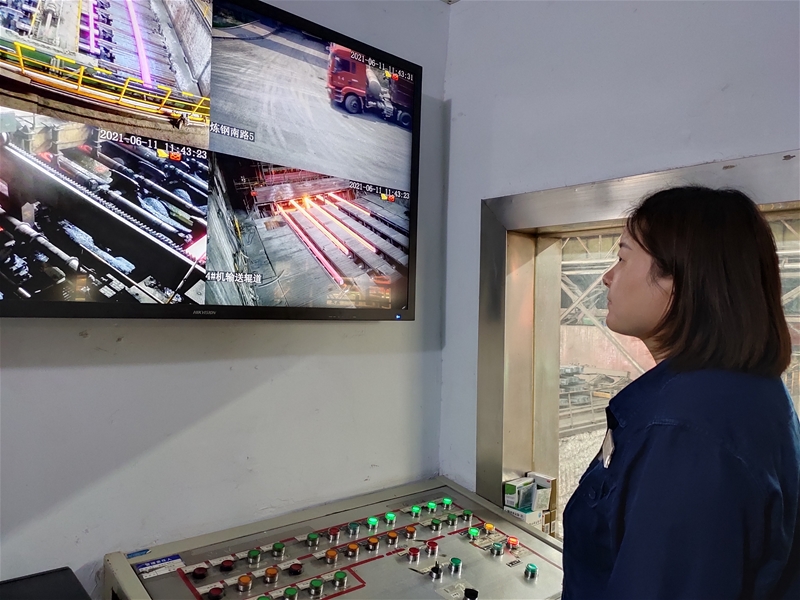 推鋼室內(nèi),操作工史曉琦一邊關注著AI智能出坯系統(tǒng)的運行情況,享受著智能化操作的好處,一邊看著臺下推鋼機的運行狀況。她說,“之前人工操作不免會發(fā)生一些瑕疵,如鑄坯推不齊、鑄坯推彎等情況,這就要求推鋼時必須注意力高度集中,精心操作。自從AI智能出坯系統(tǒng)投入后,我們再也不擔心這種情況發(fā)生了,它解放了我們的雙手和大腦,自動出坯、推鋼,智能控制各種參數(shù),通過計算出坯的速度,設定推鋼機的運行時間,順利將鑄坯推上冷床。”她一邊說,一邊記錄著推鋼支數(shù)……在這炎炎夏日,連鑄的推鋼工和拉矯剪切工們一直堅守在崗位,一起見證智能化帶來的累累碩果。