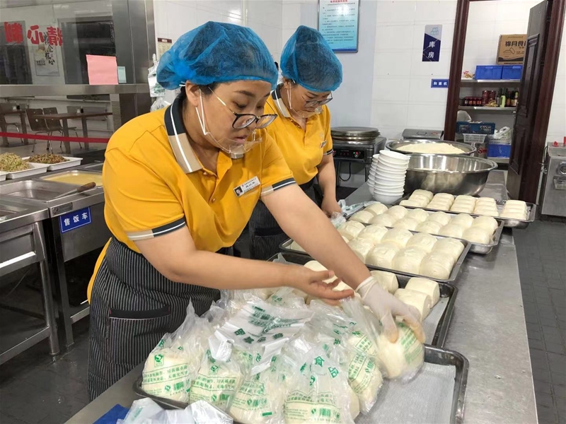 當大多數(shù)人還沉醉在睡夢中的時候,餐廳后廚早已開始忙碌:摘菜、洗菜、切菜、和面、熬稀飯、制作餅子、清掃衛(wèi)生、燒水備料……為保證廣大干部職工能夠準時享用到美味的早餐,他們必須在6點前完成早餐品種制作及用餐場所消毒工作。