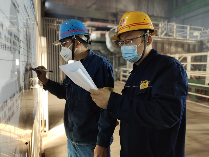“今天混料機(jī)積料清理已經(jīng)完成。”“臺(tái)車(chē)拆卸爭(zhēng)取明天早上拆卸完畢。”“轉(zhuǎn)臂式液密封環(huán)冷機(jī)改造項(xiàng)目采取24小時(shí)輪班制度……”在400㎡燒結(jié)機(jī)檢修推進(jìn)工作會(huì)上,檢修各項(xiàng)目負(fù)責(zé)人正在逐一匯報(bào)當(dāng)日項(xiàng)目進(jìn)度。