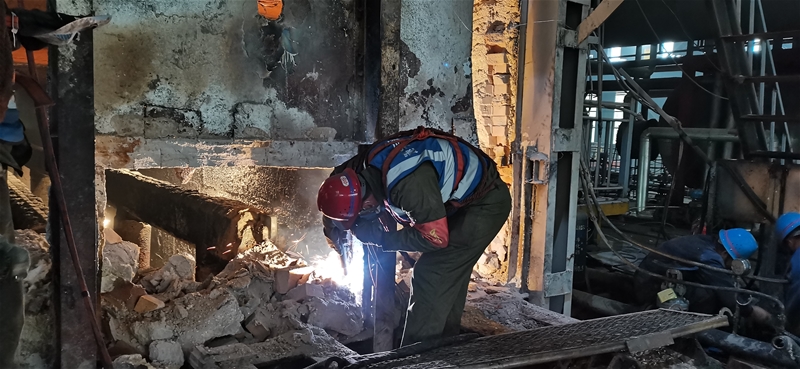 內(nèi)委、外協(xié),協(xié)同作業(yè)。在檢修現(xiàn)場(chǎng),一群藍(lán)色牛仔服中加入迷彩、黑色、天藍(lán)等其他顏色的衣服,帶有龍鋼標(biāo)志的各色安全帽,也加入了其他樣式的帽子。他們是來(lái)自全國(guó)各地的外協(xié)施工人員。年終檢修時(shí)間緊、任務(wù)重,檢修任務(wù)保質(zhì)保量完成離不開(kāi)這些人員的辛勤付出。公司對(duì)本部施工人員承修的區(qū)域進(jìn)行管理推進(jìn)的同時(shí),按照“一家人共事,一體化管理”的理念,對(duì)外協(xié)單位的現(xiàn)場(chǎng)檢修進(jìn)度、檢修質(zhì)量、施工安全進(jìn)行同步跟蹤、驗(yàn)收、監(jiān)管,內(nèi)委、外協(xié)檢修人員齊心協(xié)力,確保此次年終檢修保質(zhì)保量順利完成。