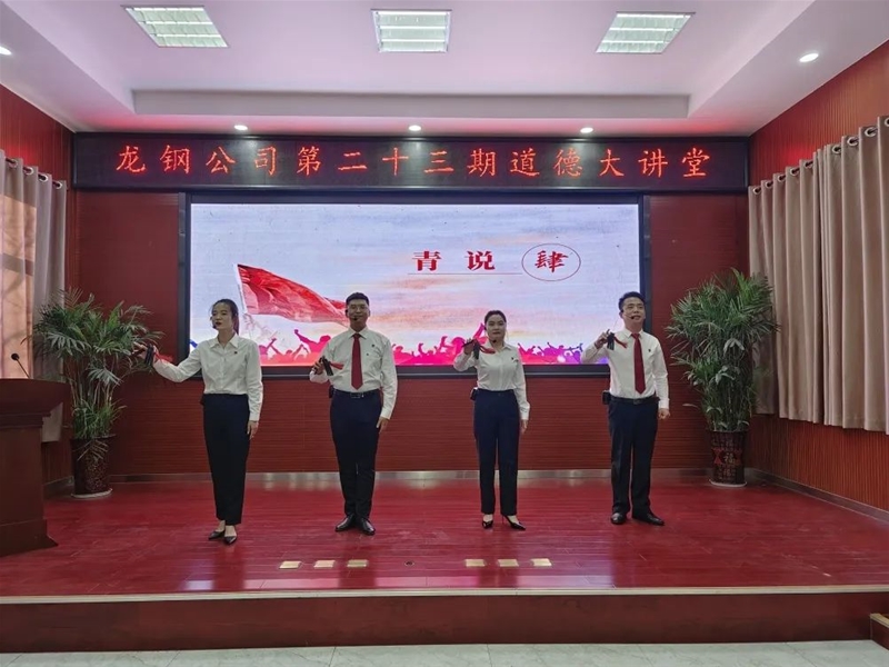 此次道德大講堂以“青春中國 強企有我”為主題,共設(shè)五個環(huán)節(jié)。青思環(huán)節(jié),全體在場人員一起聆聽習(xí)近平總書記在黨的二十大報告中對青年的寄語,激發(fā)了大家堅定不移聽黨話、跟黨走,與時代同步伐、與人民共命運、與企業(yè)齊奮進的昂揚斗志;青聲環(huán)節(jié),一曲《少年中國說》將青年心似驕陽、意氣風(fēng)發(fā)的開拓進取之姿展露無遺;青才環(huán)節(jié),4名志愿者分享了鋼城優(yōu)秀青年的成長故事,讓大家近距離感悟榜樣力量,體會先進卓越,從而自覺對標(biāo)向模范看齊;青說環(huán)節(jié),鏗鏘有力的快板表演讓黨的二十大精神更加深入人心,勉勵廣大青年堅持學(xué)思用貫通、知信行統(tǒng)一;青拳環(huán)節(jié),退役青年軍人的擒敵拳打出了豪氣與壯志,更展現(xiàn)了龍鋼人堅定理想、百折不撓、勇于創(chuàng)新、勇挑重擔(dān)的精氣神。