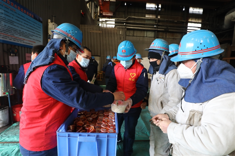 “大冷天的,吃點(diǎn)餃子暖暖身!”“慢點(diǎn)吃,小心燙!”一句句貼心的祝福,一份份鮮美的餃子,像是冬日的一縷陽光,溫暖著職工的心。