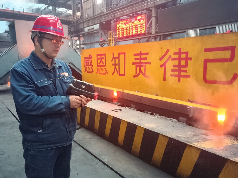 如何讓技術(shù)更好地服務(wù)生產(chǎn)?他做了最接地氣的探索和研究,使軋鋼工藝流程更加規(guī)范,標(biāo)準(zhǔn)更加清晰,執(zhí)行更加堅(jiān)決。今年,在他的帶領(lǐng)下,成功開發(fā)HRB500E低溫直軋工藝。由于該工藝國(guó)內(nèi)無先例,開發(fā)難度大,通過多次試驗(yàn)摸索,最終總結(jié)出一套適用于棒一生產(chǎn)線的HRB500E低溫直軋工藝并初步固化。新技術(shù)的應(yīng)用,在促進(jìn)生產(chǎn)穩(wěn)定、降本增效、項(xiàng)目建設(shè)等方面起到了舉足輕重的作用。同時(shí),他牽頭組織技術(shù)攻關(guān)小組,對(duì)棒一直軋連鑄坯因頭尾溫差大造成的性能差問題,反復(fù)討論試驗(yàn)方案,打磨細(xì)節(jié),制定詳細(xì)的技術(shù)試驗(yàn)方案和應(yīng)急預(yù)案,最終通過系統(tǒng)參數(shù)優(yōu)化,保障了鋼材通條性能穩(wěn)定,為生產(chǎn)穩(wěn)定順行奠定堅(jiān)實(shí)基礎(chǔ)。目前,HRB500E產(chǎn)品已實(shí)現(xiàn)批量生產(chǎn),力學(xué)性能穩(wěn)定性好,確保訂單及時(shí)兌現(xiàn),成材率、定尺率等主要經(jīng)濟(jì)技術(shù)指標(biāo)大幅提升,有效提升了“禹龍”品牌產(chǎn)品在高強(qiáng)鋼筋市場(chǎng)的競(jìng)爭(zhēng)力。