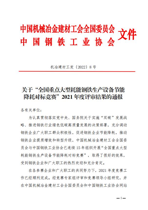 近日,從中國鋼鐵工業(yè)協(xié)會獲悉,由中國機械冶金建材工會全國委員會與中國鋼鐵工業(yè)協(xié)會聯(lián)合開展的“2021年度全國重點大型耗能鋼鐵生產(chǎn)設備節(jié)能降耗對標競賽”結(jié)果揭曉,龍鋼公司5#轉(zhuǎn)爐榮獲節(jié)能降耗“優(yōu)勝爐”、450m2燒結(jié)機榮獲節(jié)能降耗“創(chuàng)先爐”。尤其5#轉(zhuǎn)爐是陜鋼集團單座爐機線首次獲得優(yōu)勝爐,標志著陜鋼集團設備能耗水平逐步邁入行業(yè)先進序列。