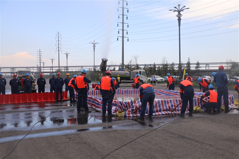 此次演練以龍鋼公司遭遇特大暴雨,新南門玉鏡大街6#雨排口雨水激增,形成局部“內陸湖”為模擬情景,重點檢驗各單位在防洪防汛事故時的組織協(xié)調、應急處置、物資使用、執(zhí)行落實應急能力。模擬防汛事故發(fā)生后,龍鋼公司應急防汛辦立即啟動防汛應急預案,各單位協(xié)同聯(lián)動、積極響應,立即組織防汛隊員拉警戒線、運輸防汛物資、隔斷上游來水,攜帶防汛設施趕到現(xiàn)場進行救援。整個演練分工明確、銜接有序、救援及時,汛情快速得到解決。