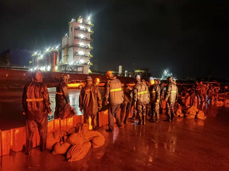 圖四:由于多天的連續(xù)強降雨,導(dǎo)致公司5#雨排外的雨水蓄水池水面持續(xù)上升,存在雨水倒灌廠區(qū)的風險,防汛辦與環(huán)保辦根據(jù)雨勢情況對其進行全天候不間斷檢查。