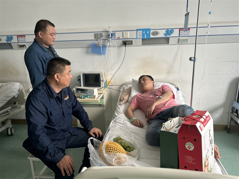 “最近身體恢復得可好,公司職工大病補助政策很好,住院一大半費用都會報銷……馬上中秋了,希望你早日康復,回家過個團圓的中秋節(jié)。”病房內,煉鋼廠電儀黨支部書記劉衛(wèi)東正在慰問生病職工。