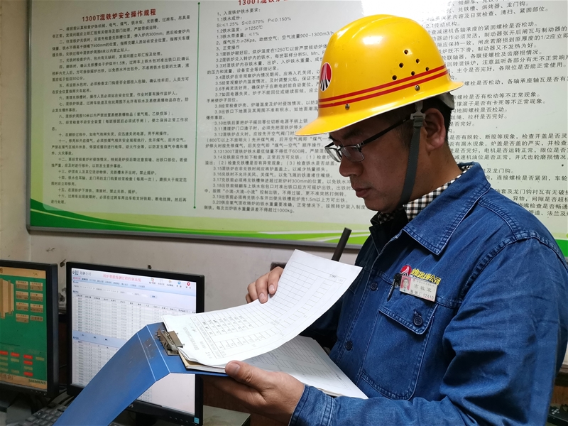 在原料作業(yè)區(qū)有這樣一位盡職盡責(zé)的班長,他是原料作業(yè)區(qū)混鐵爐丁班班長李剛。在忙碌的操作室里,他聚精會神地盯著每一項指標(biāo),確保各項指標(biāo)合格、生產(chǎn)順行。為了更好地服務(wù)轉(zhuǎn)爐,特別是混勻鐵水成分及均勻溫度。他時刻緊盯混鐵爐各項指標(biāo),不斷穩(wěn)定煤氣壓力及煤氣配比,以保持爐溫穩(wěn)定,爐內(nèi)加碳化稻殼保溫,減少爐內(nèi)溫度波動。在他的監(jiān)督下,一系列程序都有條不紊進(jìn)行著,為生產(chǎn)穩(wěn)定順行打下堅實基礎(chǔ)。