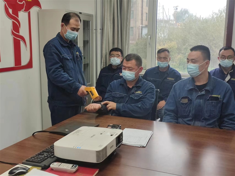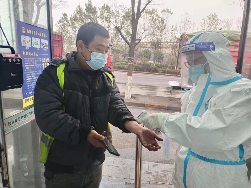 筆者上夜班見到他時,他依舊笑臉相迎不厭其煩地在測溫,查驗健康碼和核酸檢測結果。有人質疑他“不嫌麻煩”,他幽默風趣地笑著解釋:“疫情多變,無癥狀感染者人數居多,咱們千萬不能掉以輕心,這樣做不麻煩,而是為了大家都能安心在廠、安全在崗。”說完,他繼續(xù)負責測溫、查碼,并不知疲倦地巡查北門初檢和自動采樣站揭篷布兩個重點崗位。