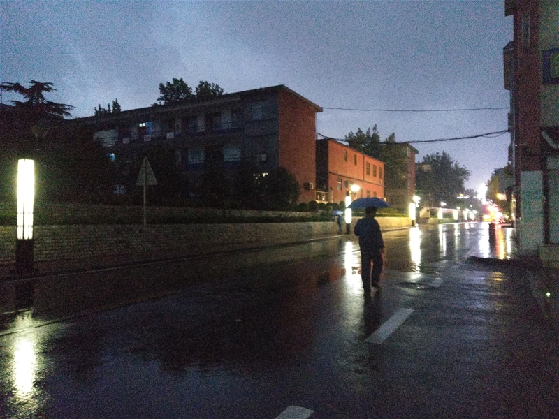 就在人們的期盼和意外之中,正午的天空毫無征兆的下起了雨。只是這雨不知醞釀了多久,才用它獨特的方式來渲染它存在的重要,細(xì)細(xì)的雨絲將天和地之間穿成無數(shù)雨簾,任車輛、行人在這獨一無二的杰作間穿梭前行。孩子們放學(xué)時間,龍鋼大道一朵朵花花綠綠的雨傘,在雨中高舉晃動、熙攘穿梭,還有騎電動車接孩子的人,也都穿上了五顏綠色的雨披,接上孩子,在雨中疾馳而過。