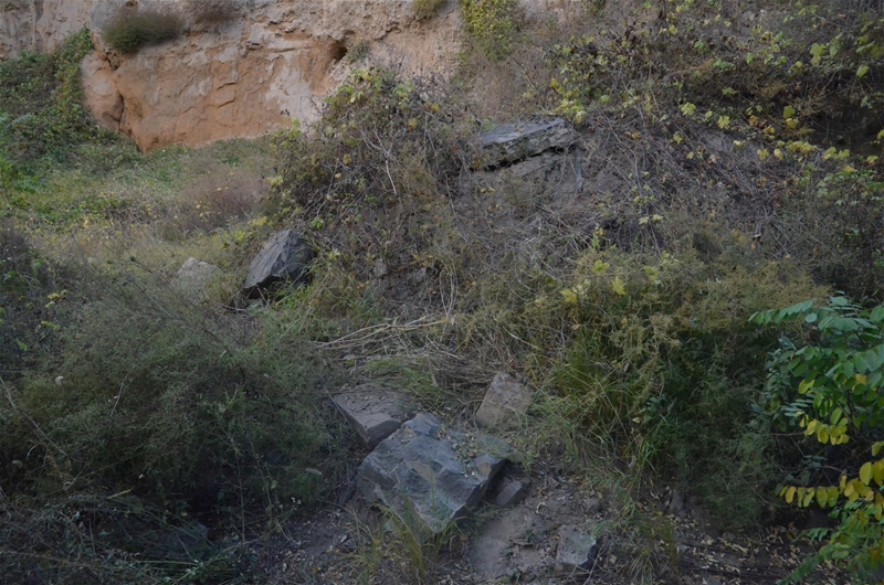 幸遇熱心村民協(xié)助,于荒草野樹中搜尋,辨識(shí)到當(dāng)年職工所住窯洞三孔,及爐基、冷卻水管,蓄水池、食堂等遺跡。