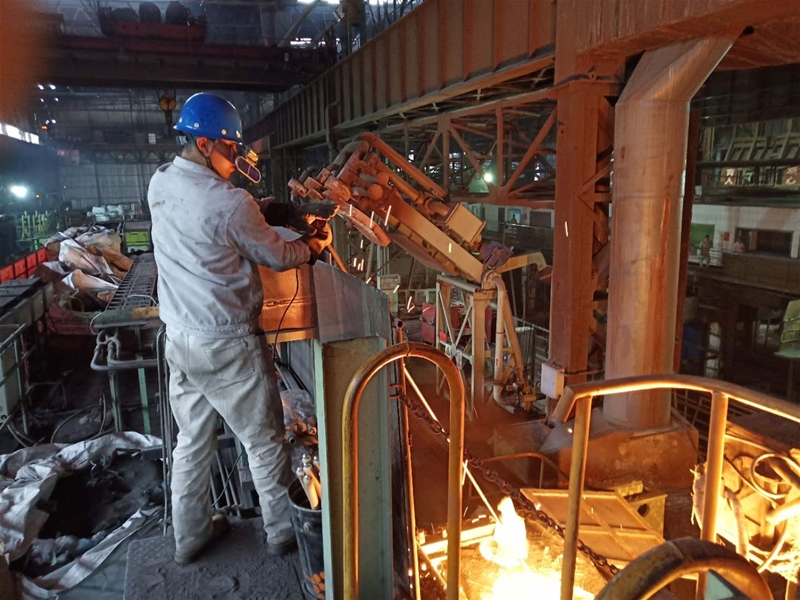 再苦再累不松勁。不論是刮風(fēng)下雨還是春夏秋冬,連鑄生產(chǎn)現(xiàn)場永遠(yuǎn)都被高溫灼烤環(huán)繞。而7月的連鑄現(xiàn)場在不透風(fēng)的廠房里儼然如同熱滾滾的“汪洋”???,臺上中包工一個個汗流浹背,汗水從安全帽底下流到臉頰,下巴上的汗珠一顆、一顆掉在地面。眼睛早已被汗水模糊了視線,他隨手用袖口一擦,眨了眨泛酸的眼睛,又繼續(xù)忙活。臺下3CT的切割工站在火紅的鋼坯旁,鎮(zhèn)定地用氧槍在切割尾坯,臉頰早已被灼烤的發(fā)紫,衣服被汗水澆透又被高溫蒸發(fā),留下一道道白色的汗?jié)n,而手里握著的割槍卻始終保持一個動作,直到尾坯被割斷。雖然工作服已經(jīng)被高溫灼烤到燙手,腳上的勞保鞋里面全是汗水,但是他仍然沒有停止自己的工作,收起氧槍后,使勁吹了一下掛在脖子上的口哨,又繼續(xù)指揮天車開始吊運尾坯。