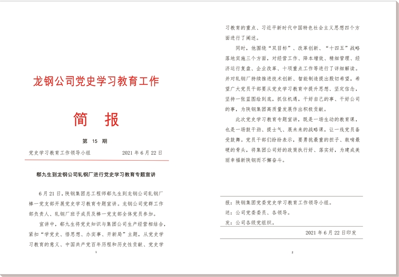 龍鋼公司《黨史學(xué)習(xí)教育工作簡報》第15期