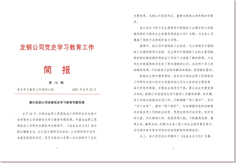 龍鋼公司《黨史學(xué)習(xí)教育工作簡報》 第16期