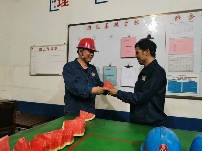該黨支部堅持“以人為本,服務(wù)職工”的宗旨,切實將黨史學習教育轉(zhuǎn)化為服務(wù)基層一線的實際行動,全心全意為職工辦實事、辦好事。為做好夏季安全生產(chǎn)和勞動保護工作,落實好防暑降溫措施,成立了送清涼工作小組,深入一線為職工送上西瓜、毛巾、飲料、雪糕、綠豆湯等。每到一處,該單位領(lǐng)導(dǎo)班子都與職工進行交流,了解職工生活、工作中需要解決的難點問題。一瓶水、一塊西瓜微不足道,卻讓一線職工在高溫下感到絲絲涼意,雖沒有華麗的語言,卻讓工友們切實感受到一股暖意。