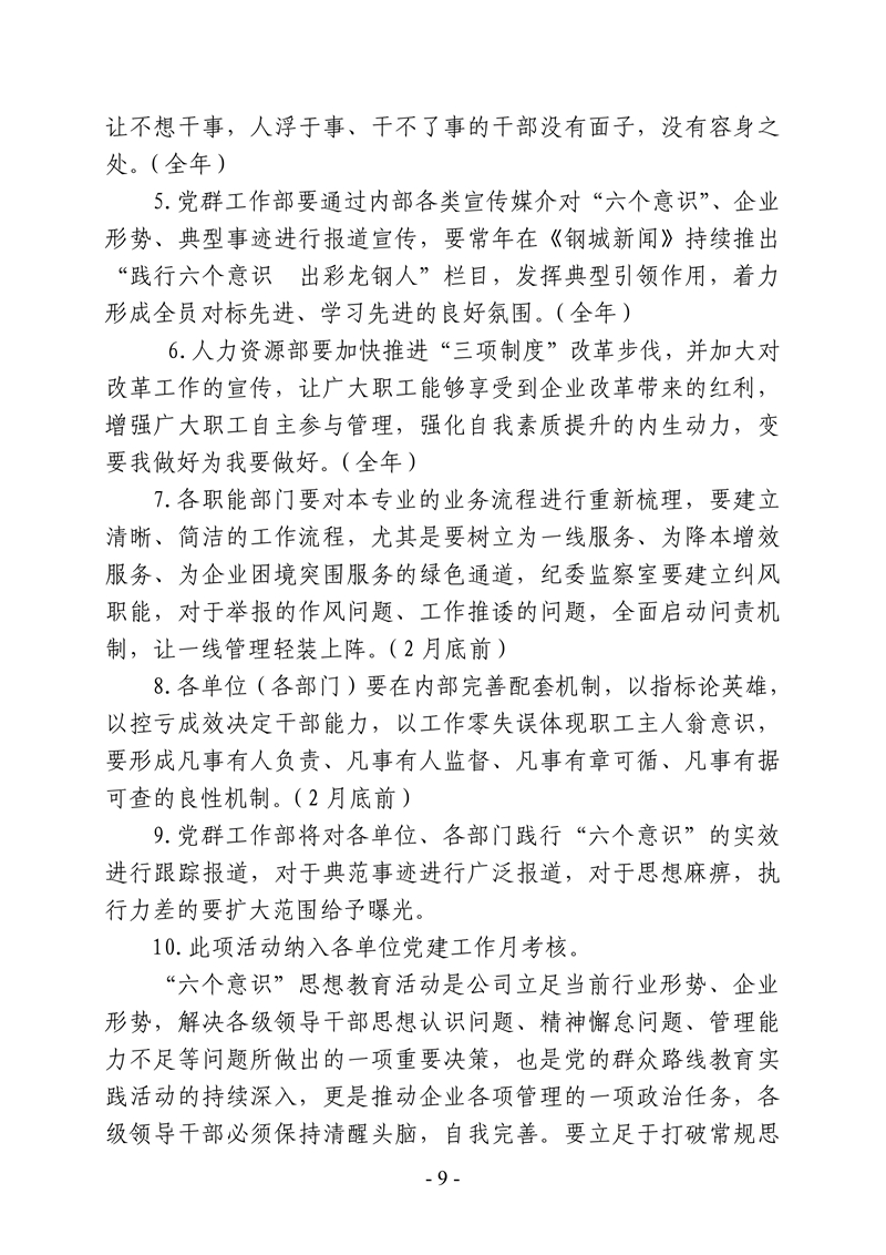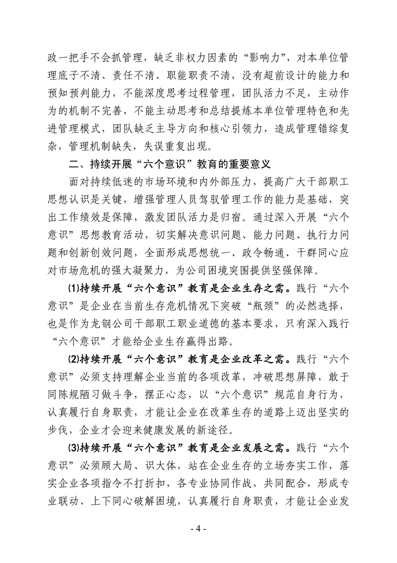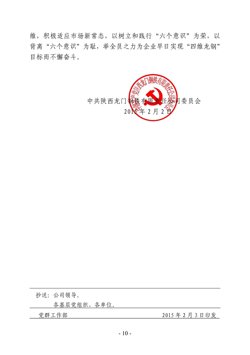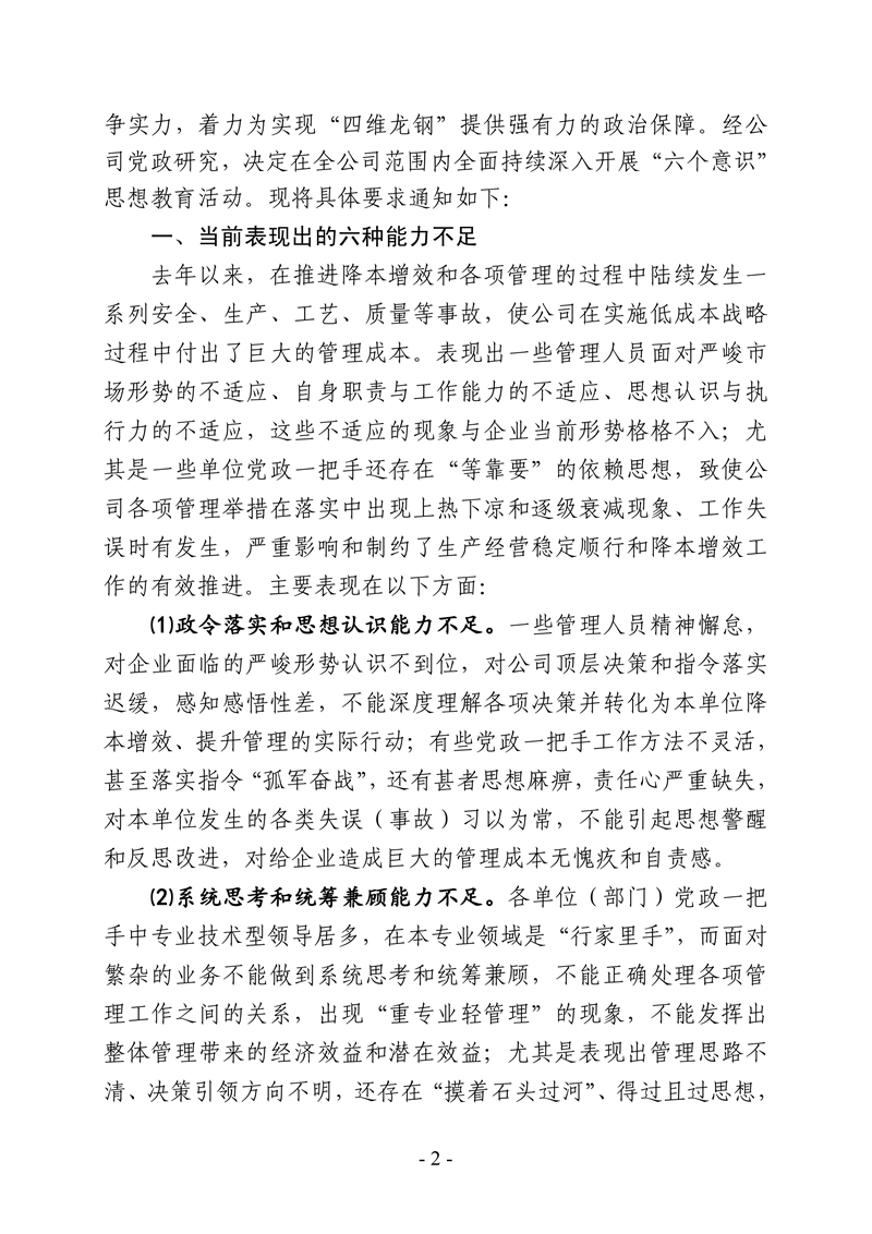 中共陜西龍門鋼鐵有限責(zé)任公司委員會 關(guān)于深入開展“六個意識”思想教育活動的通知