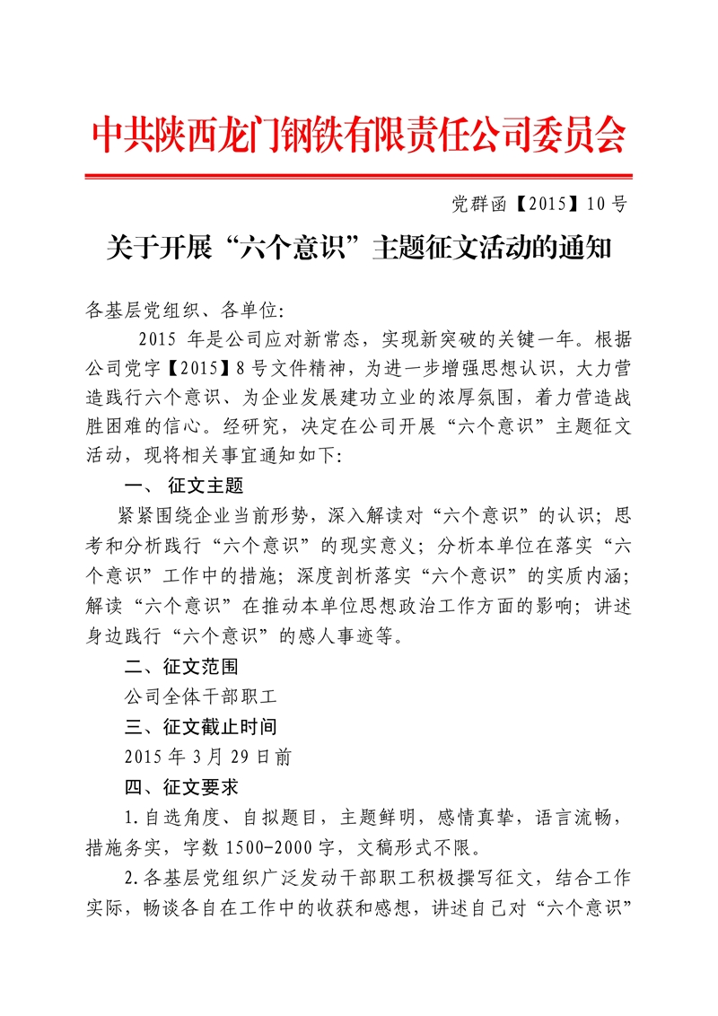 中共陜西龍門鋼鐵有限責(zé)任公司委員會(huì) 關(guān)于深入開展“六個(gè)意...
